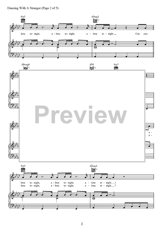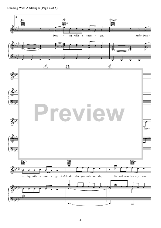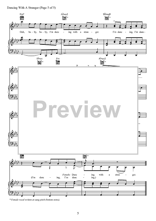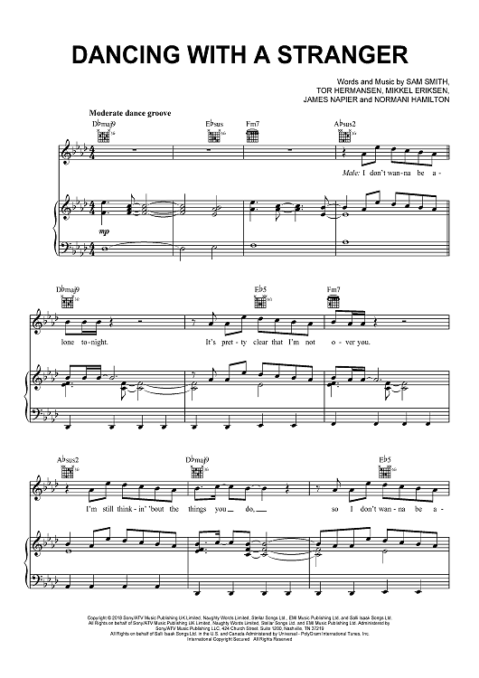 Digital Sheet Music for Dancing With A Stranger by Sam Smith, James Napier, Tor Hermansen, Mikkel Eriksen, Normani Hamilton scored for Piano/Vocal/Chords; id:467277