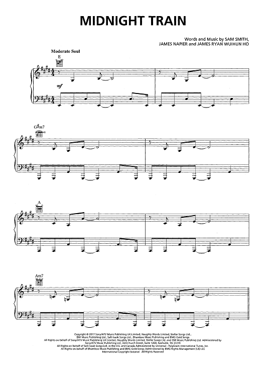 Digital Sheet Music for Midnight Train by Sam Smith, James Napier, Malay scored for Piano/Vocal/Chords; id:466233