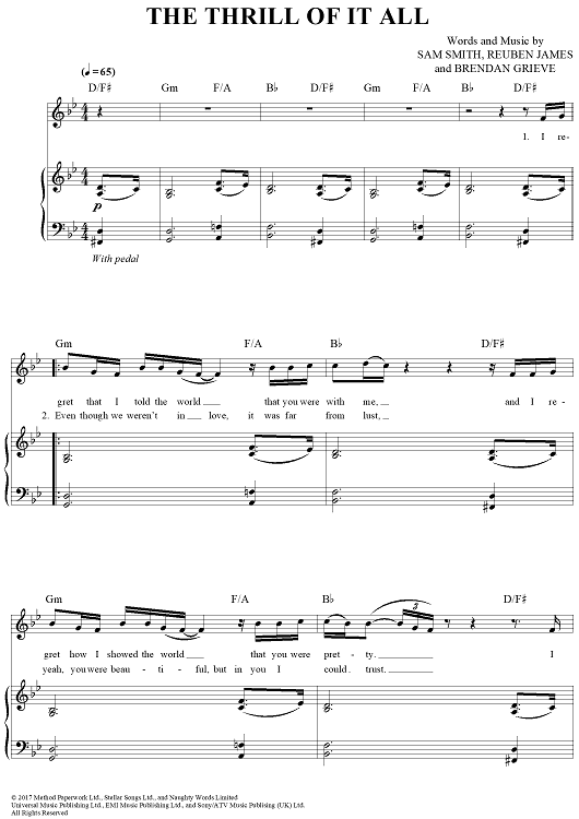 Digital Sheet Music for The Thrill of it All by Sam Smith, Reuben James, Brendan Grieve scored for Piano/Vocal/Chords; id:465812