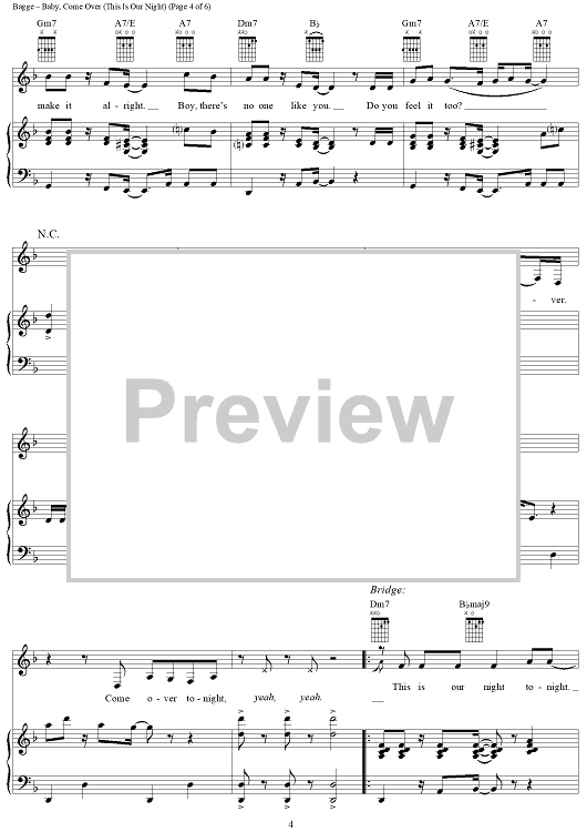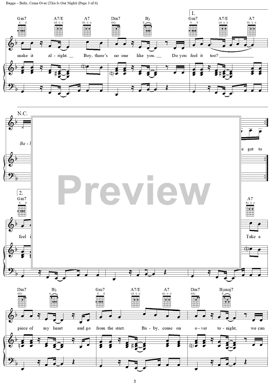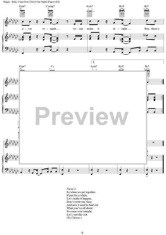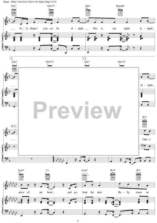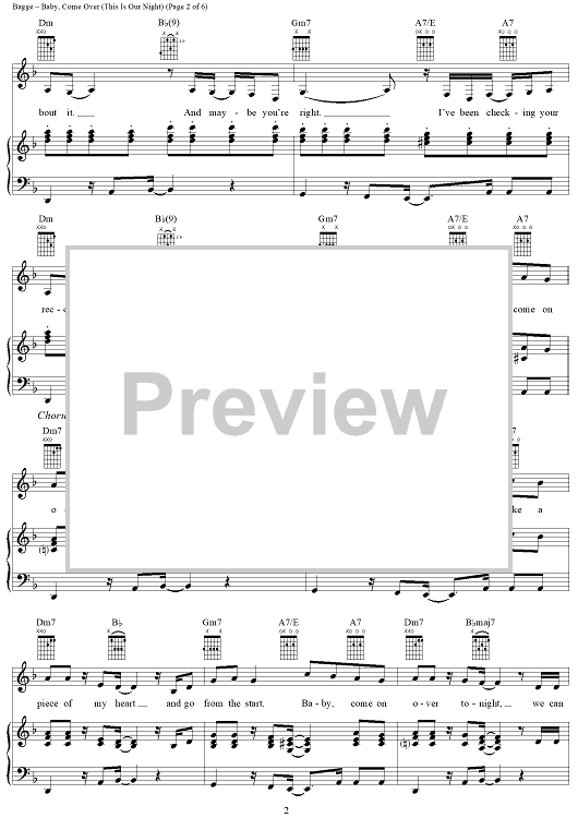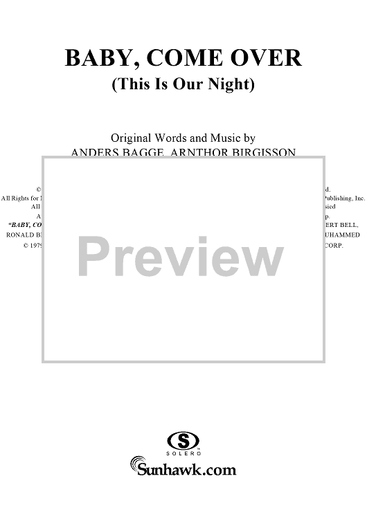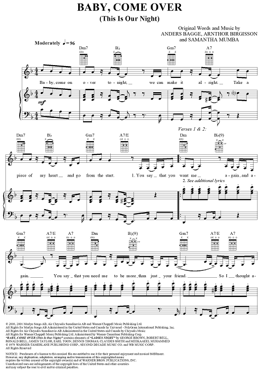 Digital Sheet Music for Baby, Come Over (This Is Our Night) by Arnthor Birgisson, Samantha Mumba, Anders Bagge scored for Piano/Vocal/Chords; id:283481