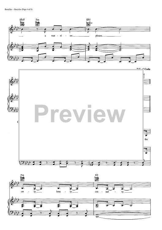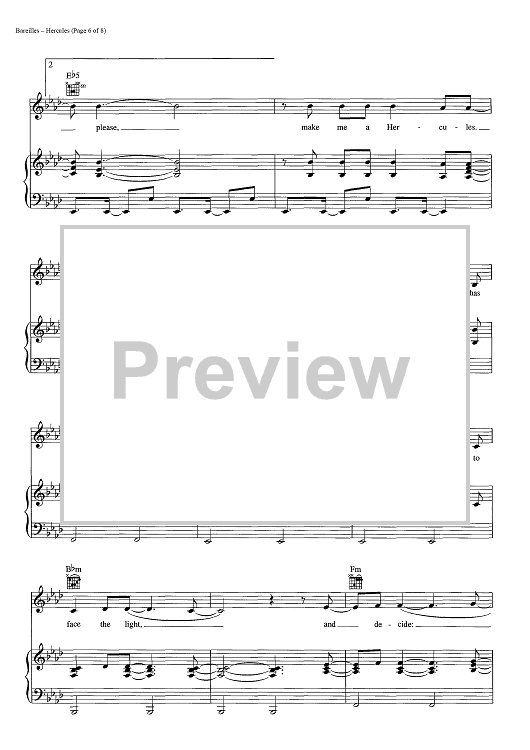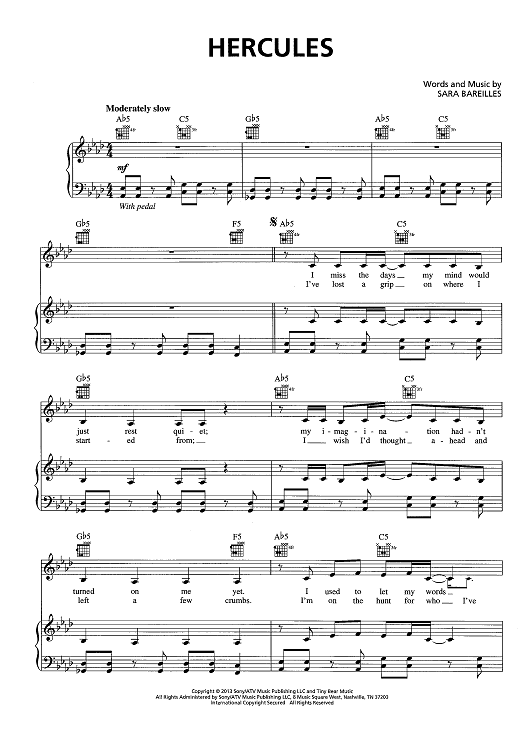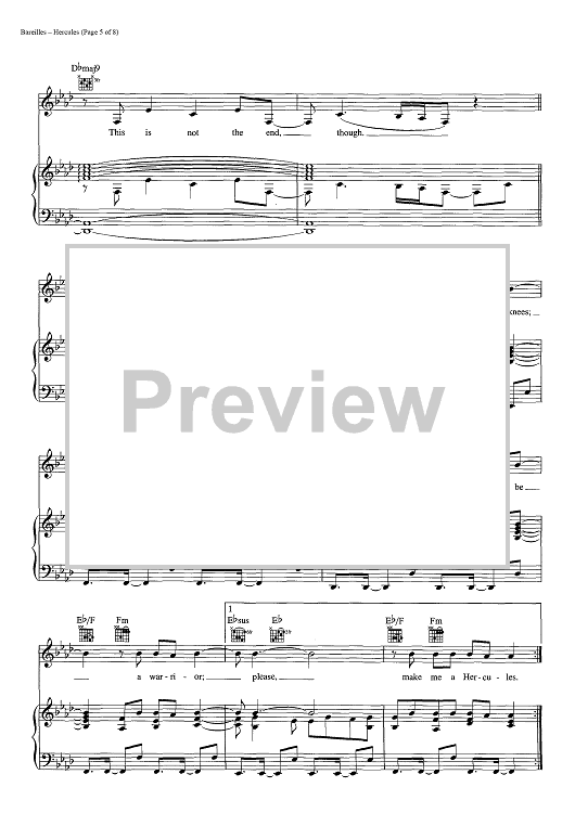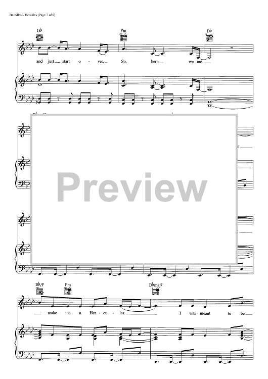 Digital Sheet Music for Hercules by Sara Bareilles scored for Piano/Vocal/Chords; id:438413