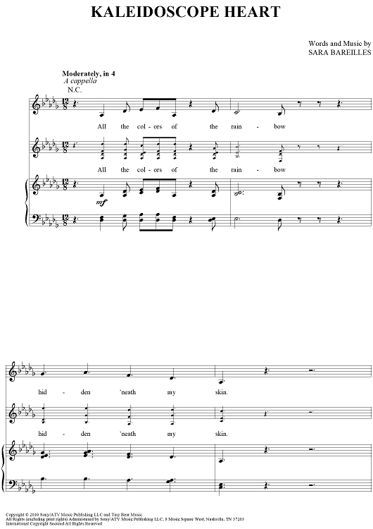 Digital Sheet Music for Kaleidoscope Heart by Sara Bareilles scored for Piano/Vocal/Chords; id:417674