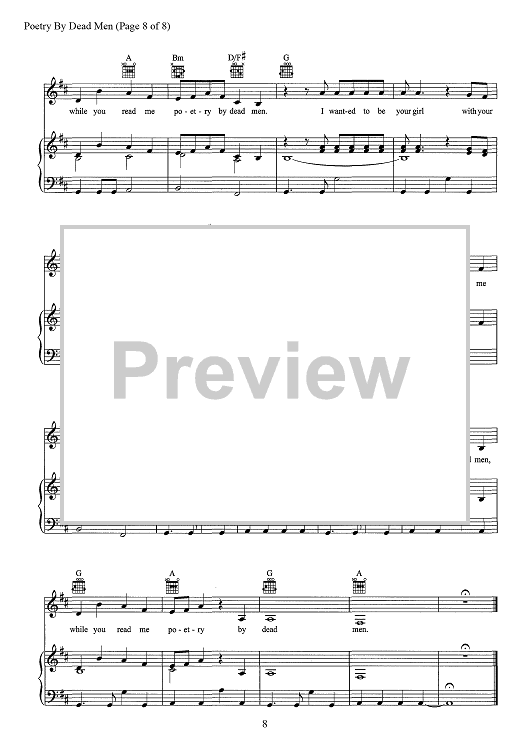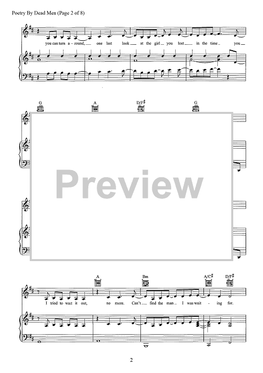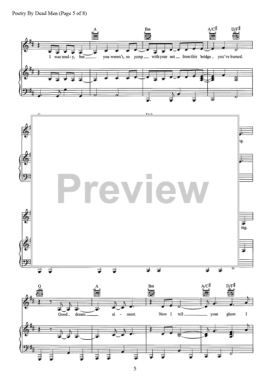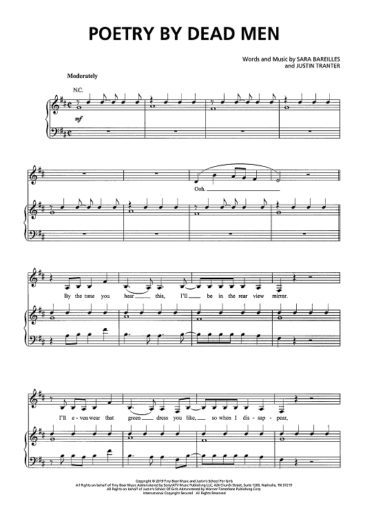 Digital Sheet Music for Poetry By Dead Men by Sara Bareilles, Justin Tranter scored for Piano/Vocal/Chords; id:467880