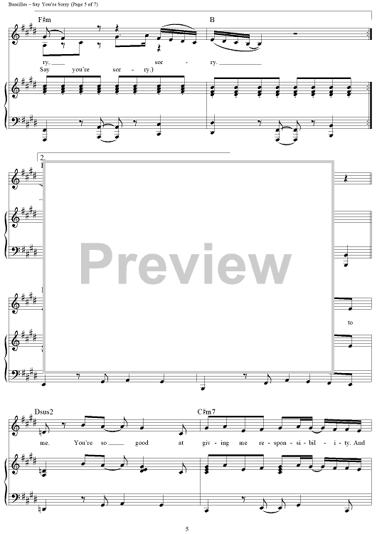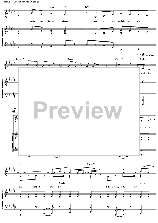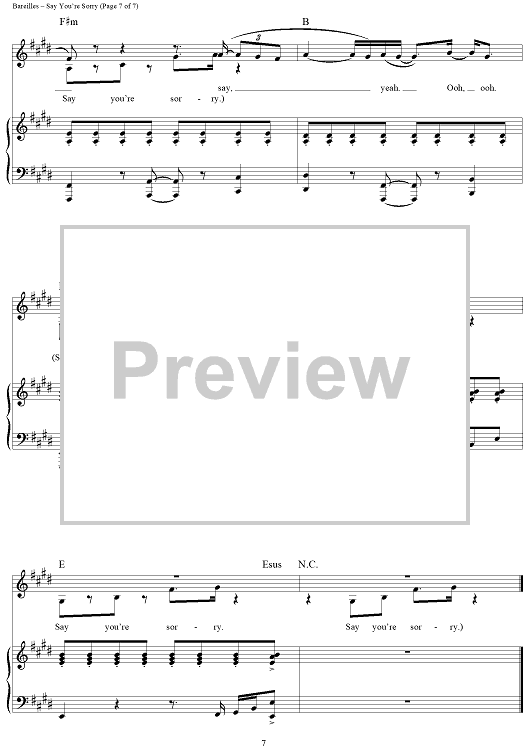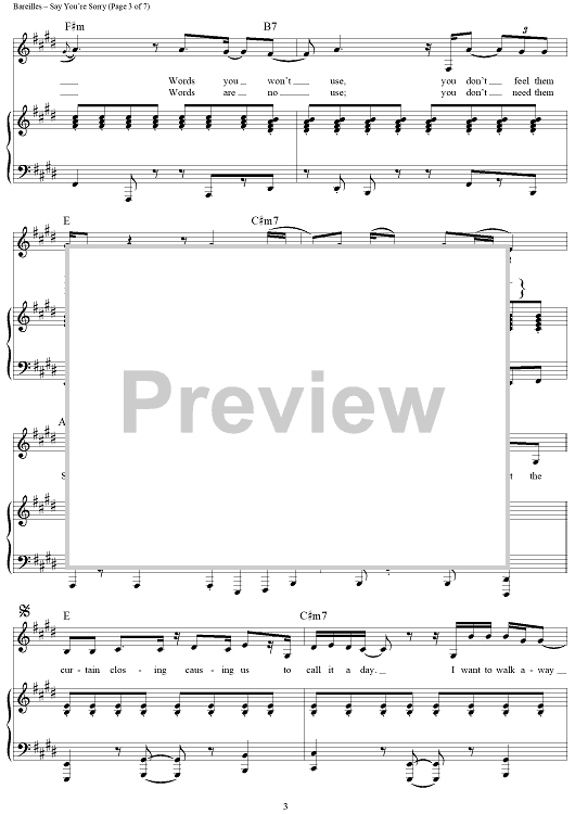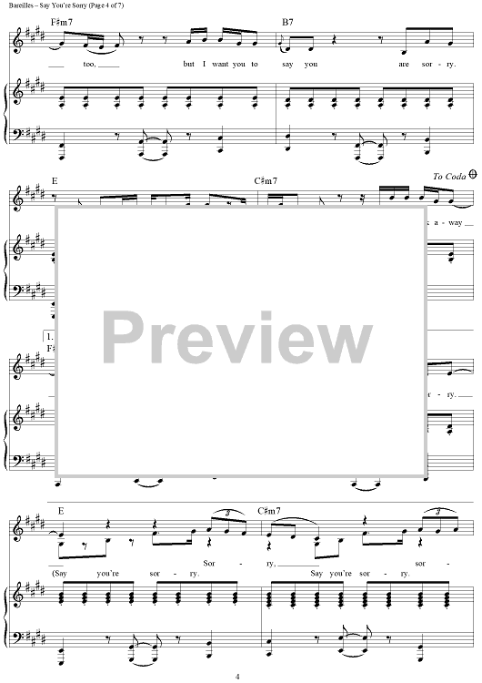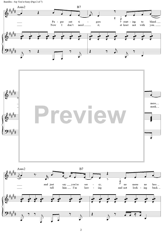 Digital Sheet Music for Say You’re Sorry by Sara Bareilles scored for Piano/Vocal/Chords; id:417675