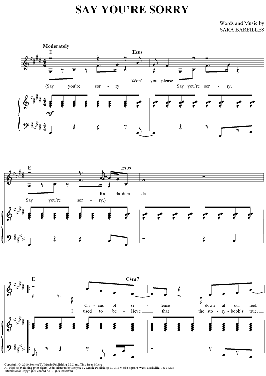 "Say You’re Sorry" Sheet Music by Sara Bareilles