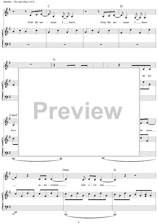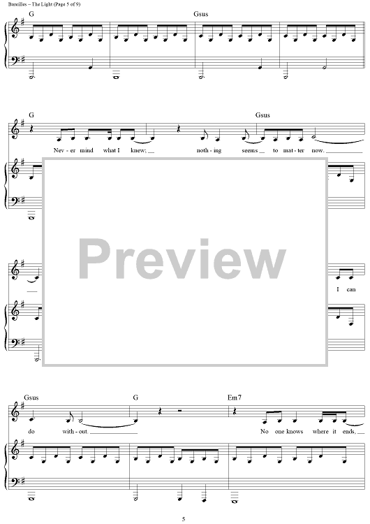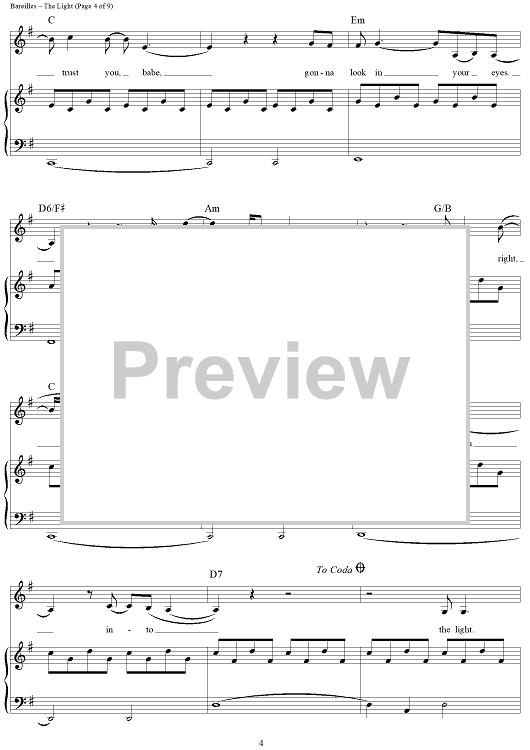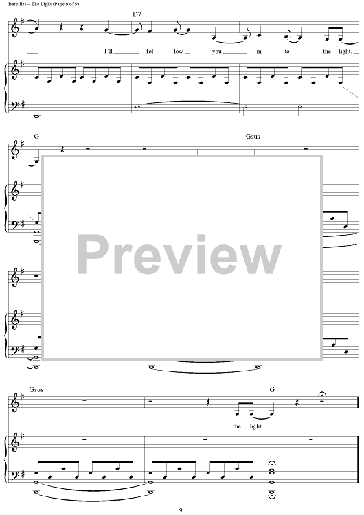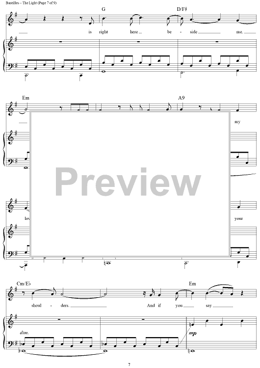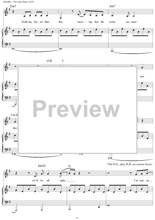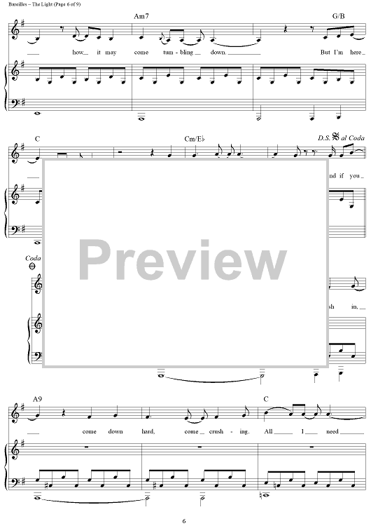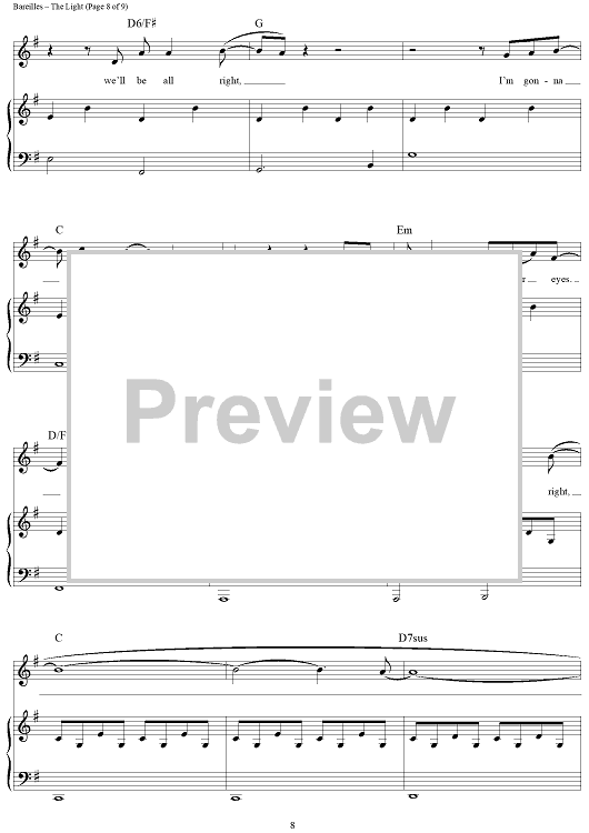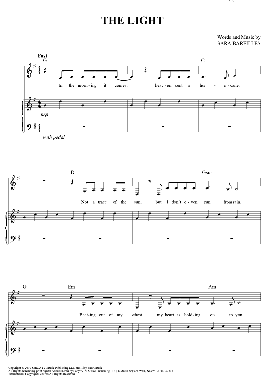 Digital Sheet Music for The Light by Sara Bareilles scored for Piano/Vocal/Chords; id:417676