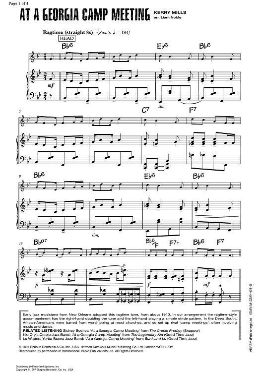 Digital Sheet Music for At a Georgia Camp Meeting by , Kerry Mills, Liam Noble scored for Saxophone 5/Piano; id:355424