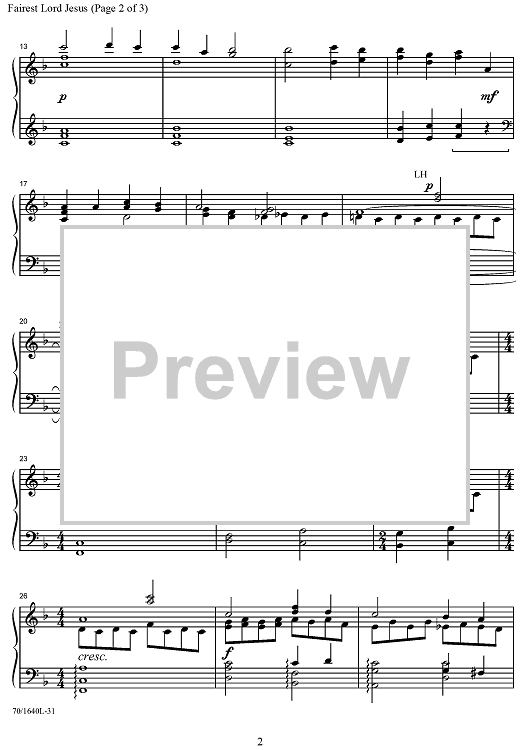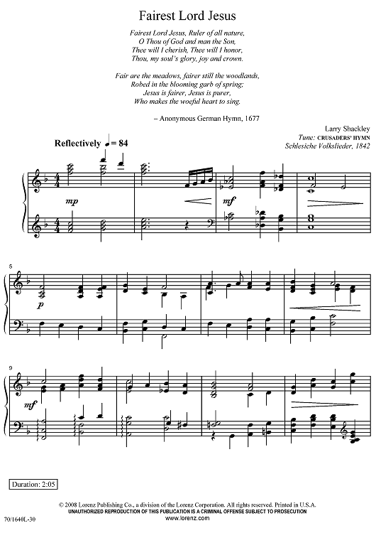 Digital Sheet Music for Fairest Lord Jesus by Schleische Volkslieder, Larry Shackley scored for Piano Solo; id:433611