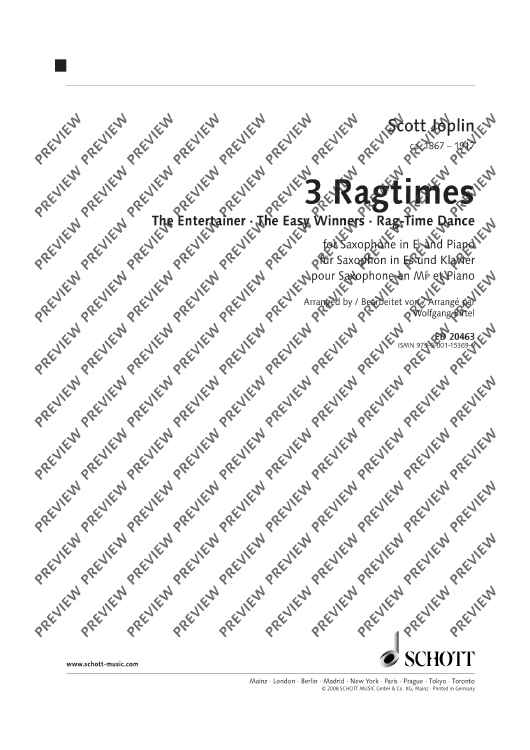 "3 Ragtimes" Sheet Music by Scott Joplin