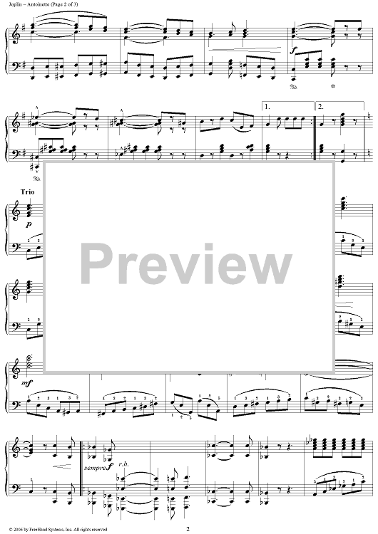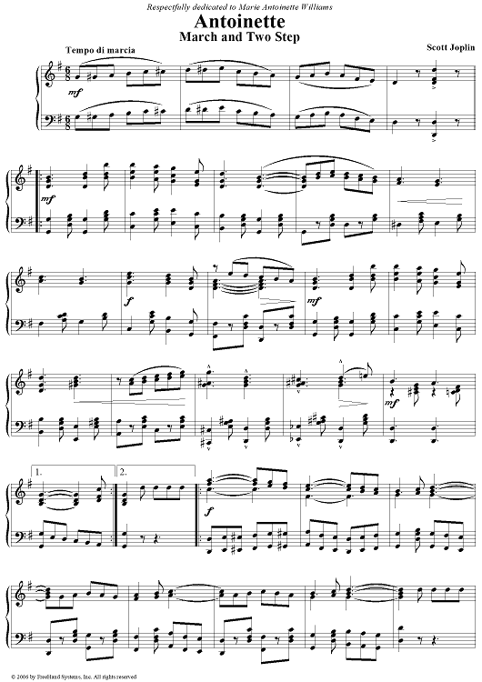 Digital Sheet Music for Antoinette by Scott Joplin scored for Piano Solo; id:249785