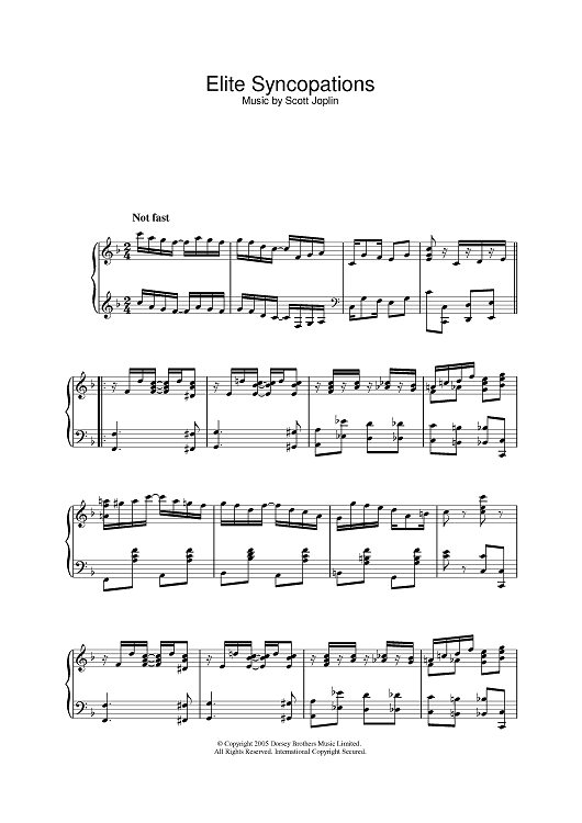 Digital Sheet Music for Elite Syncopations by Scott Joplin scored for Piano; id:383236