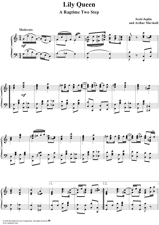 Digital Sheet Music for Lily Queen by Scott Joplin, Arthur Marshall scored for Piano Solo; id:249705
