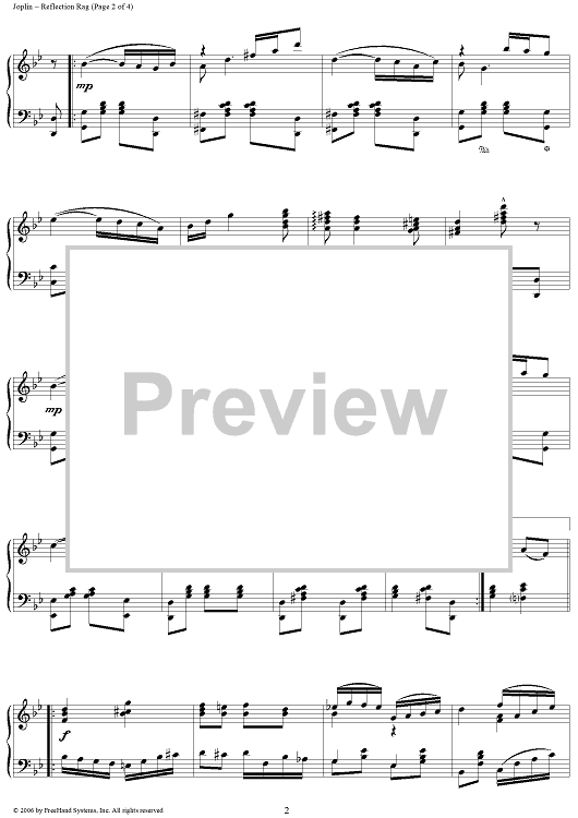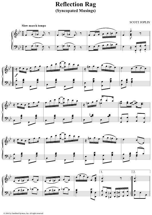 Digital Sheet Music for Reflection Rag by Scott Joplin scored for Piano Solo; id:265605