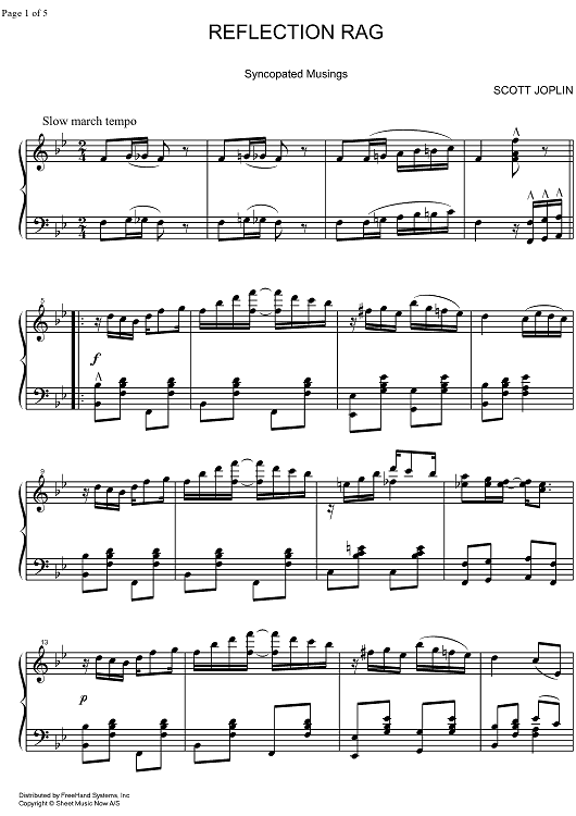 Digital Sheet Music for Reflection Rag by Scott Joplin scored for Piano Solo; id:327412
