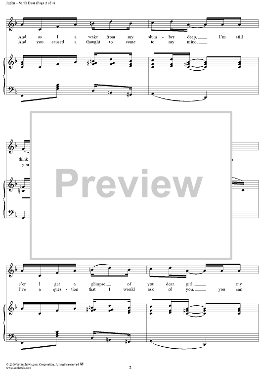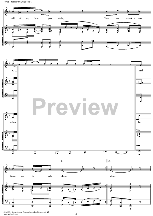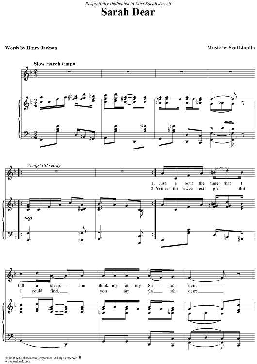 Digital Sheet Music for Sarah Dear by Scott Joplin, Henry Jackson scored for Piano/Vocal; id:249547