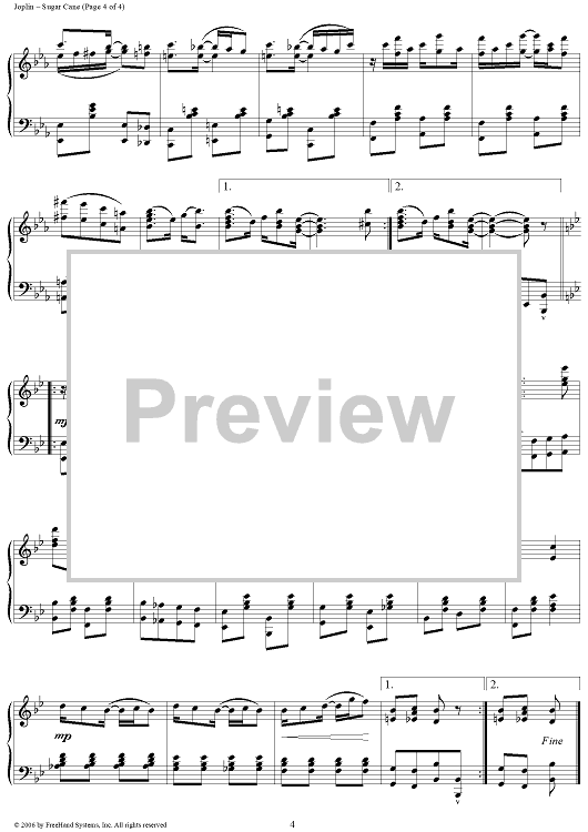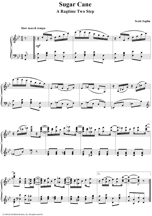 Digital Sheet Music for Sugar Cane by Scott Joplin scored for Piano Solo; id:265379