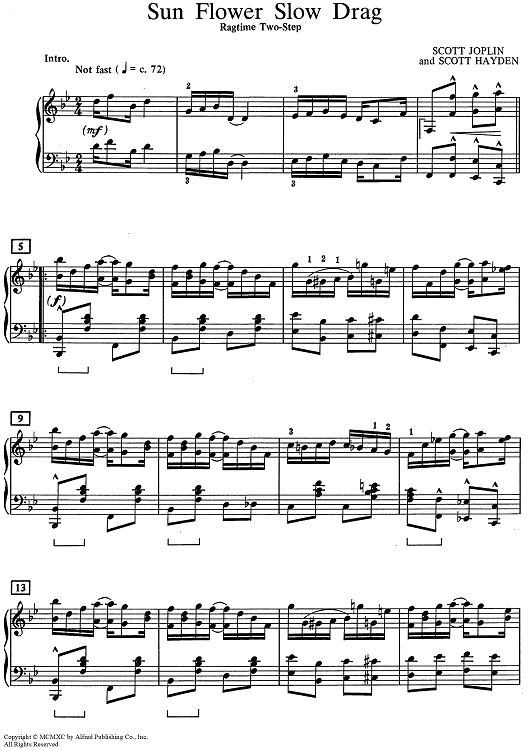 "Sun Flower Slow Drag" Sheet Music by Scott Joplin