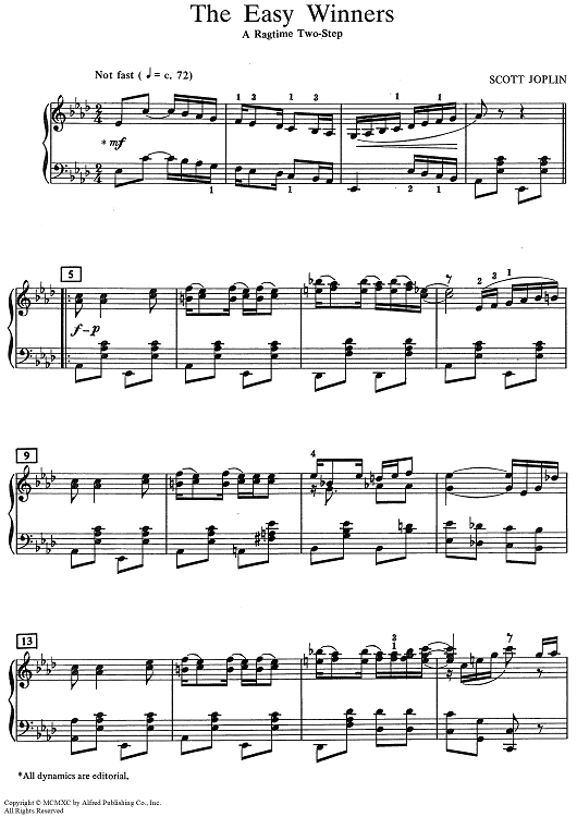 "The Easy Winners" Sheet Music by Scott Joplin