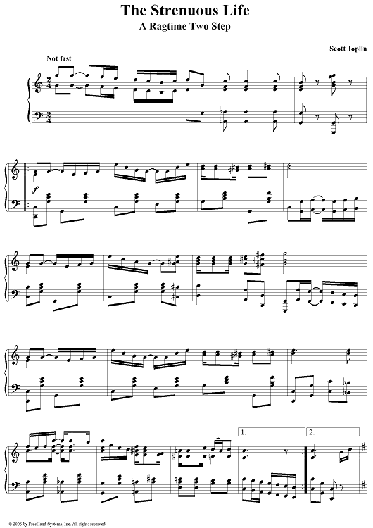 "The Strenuous Life" Sheet Music by Scott Joplin