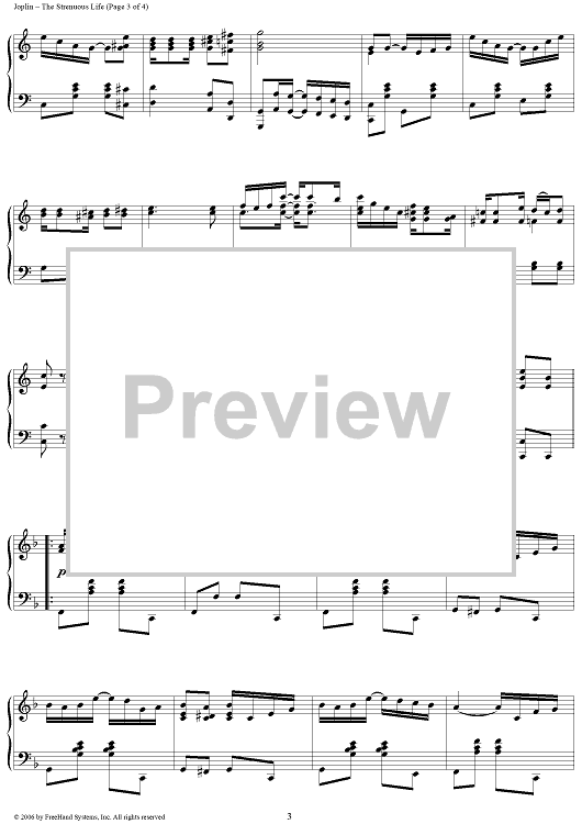 Digital Sheet Music for The Strenuous Life by Scott Joplin scored for Piano Solo; id:249715