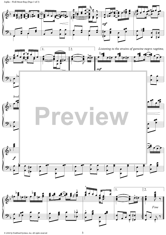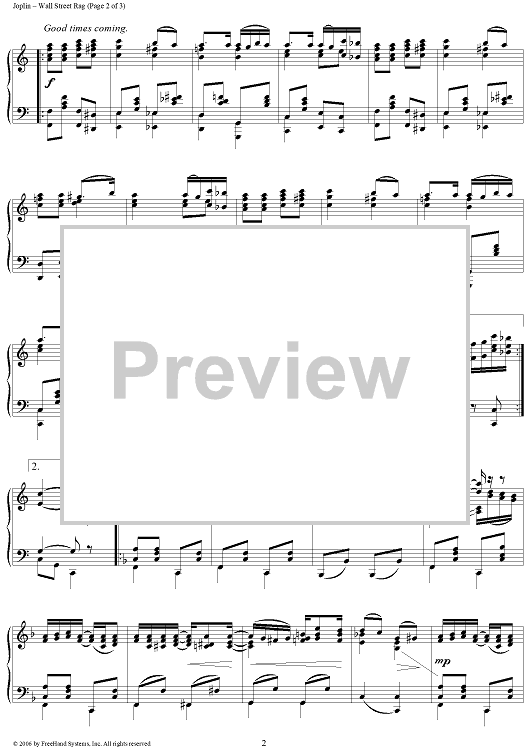 Digital Sheet Music for Wall Street Rag by Scott Joplin scored for Piano Solo; id:265399