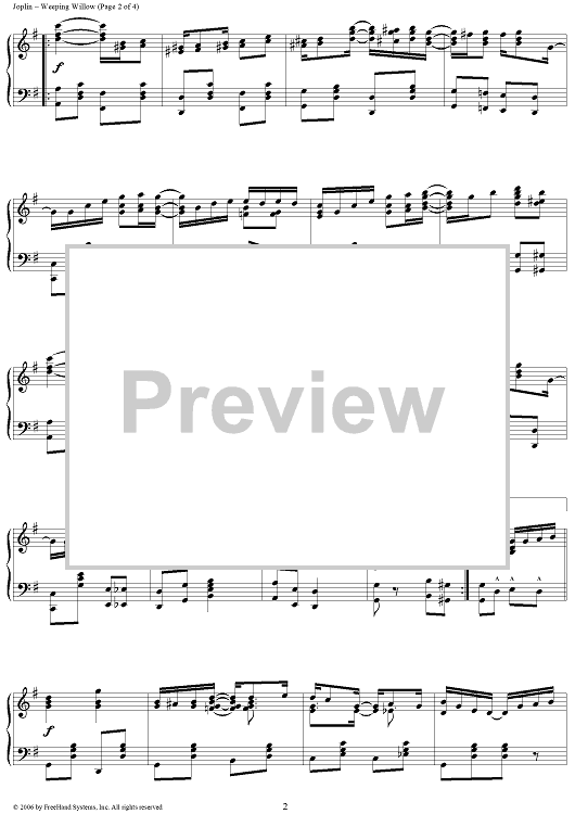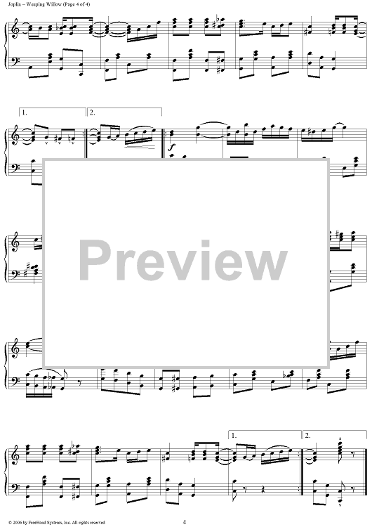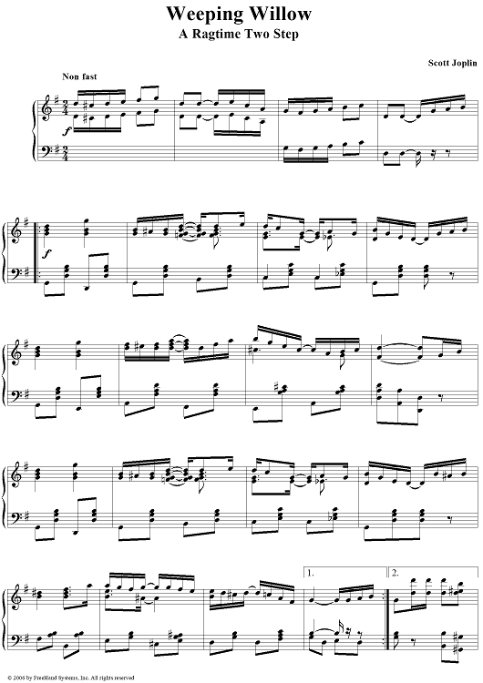 Digital Sheet Music for Weeping Willow by Scott Joplin scored for Piano Solo; id:265603