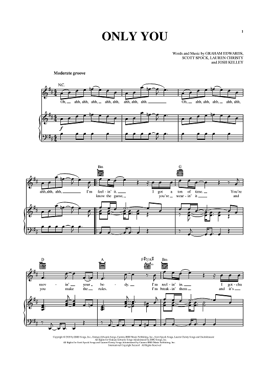 Digital Sheet Music for Only You by Lauren Christy, Graham Edwards, Scott Spock, Josh Kelley scored for Piano/Vocal/Chords; id:386654