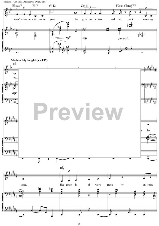 Digital Sheet Music for Cut, Print... Moving On by Marc Shaiman, Scott Wittman scored for Piano/Vocal/Chords; id:433997