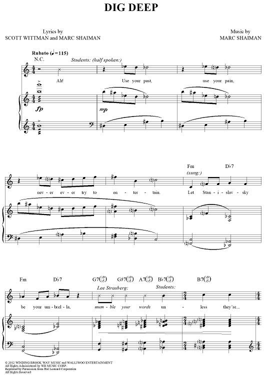 Digital Sheet Music for Dig Deep by Marc Shaiman, Scott Wittman scored for Piano/Vocal/Chords; id:433999
