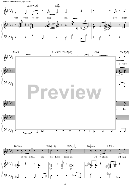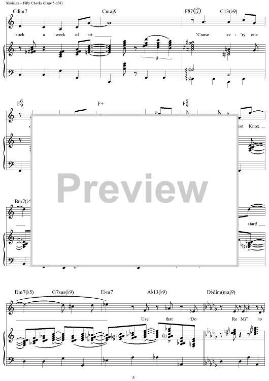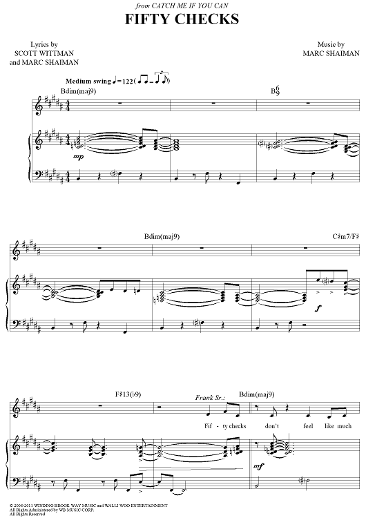 Digital Sheet Music for Fifty Checks by Marc Shaiman, Scott Wittman scored for Piano/Vocal/Chords; id:429832