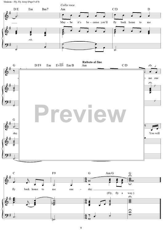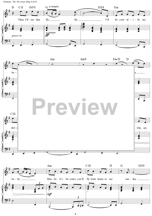 "Fly, Fly Away" Sheet Music by Marc Shaiman