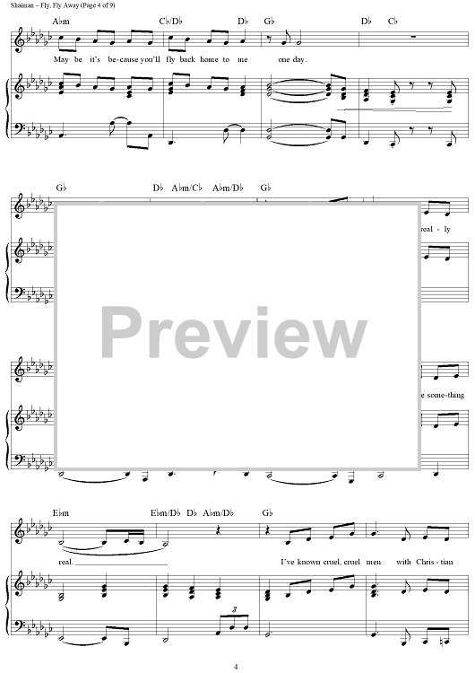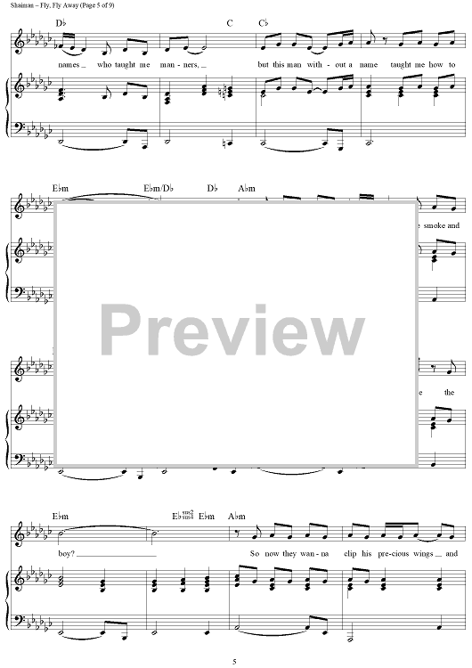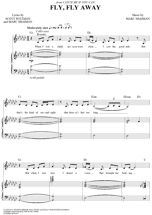 Digital Sheet Music for Fly, Fly Away by Marc Shaiman, Scott Wittman scored for Piano/Vocal/Chords; id:429947