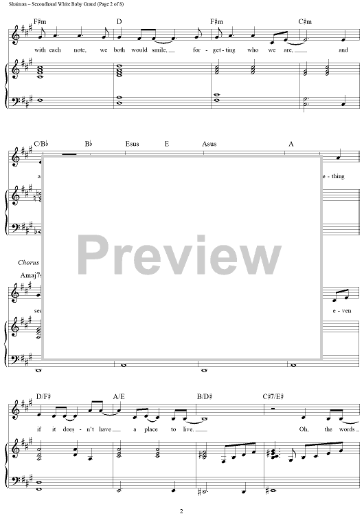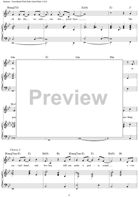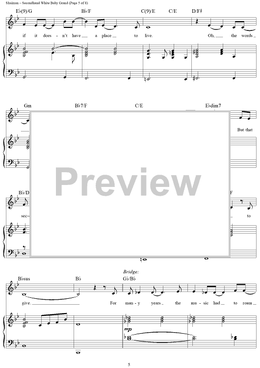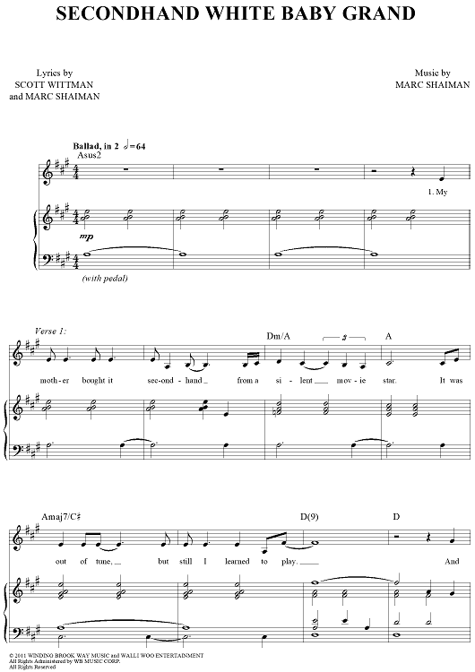 Digital Sheet Music for Secondhand White Baby Grand by Marc Shaiman, Scott Wittman, Megan Hilty scored for Piano/Vocal/Chords; id:430240
