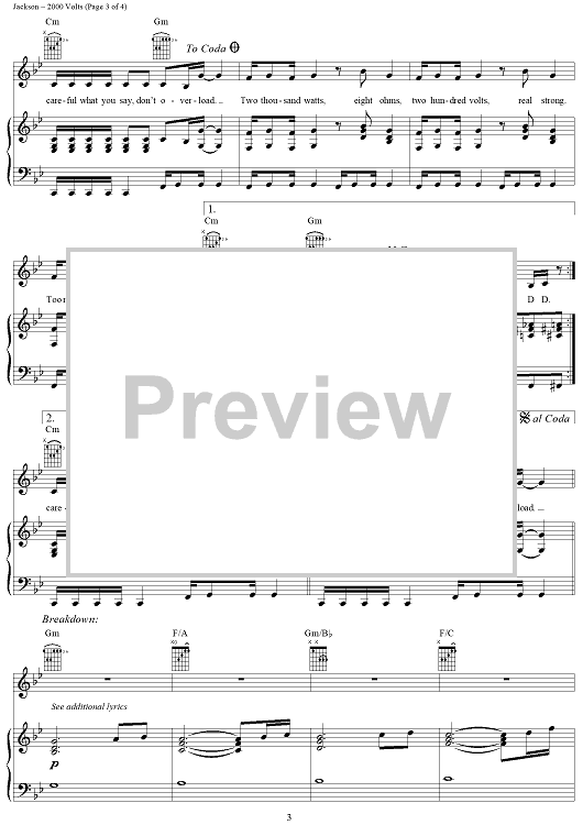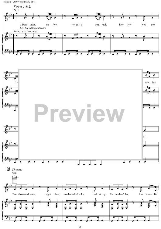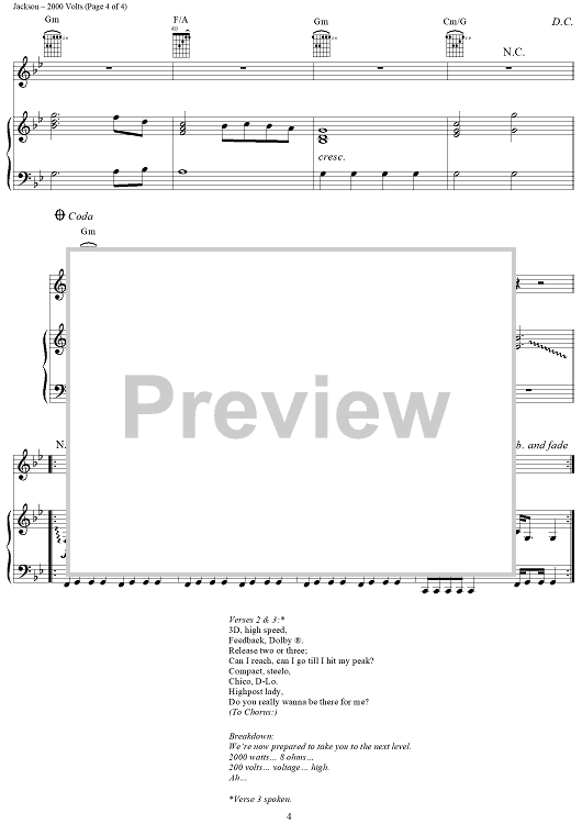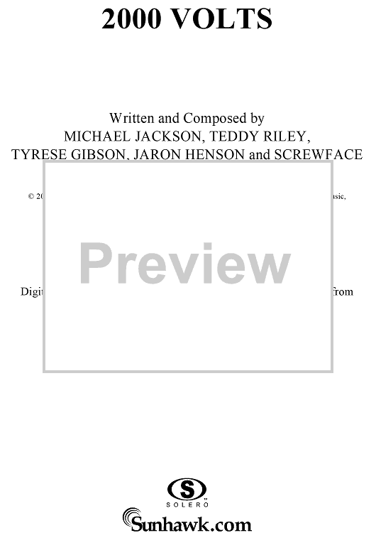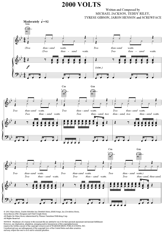 Digital Sheet Music for 2000 Volts by Michael Jackson, Teddy Riley, Tyrese Gibson, Jaron Henson, Screwface scored for Piano/Vocal/Chords; id:288925