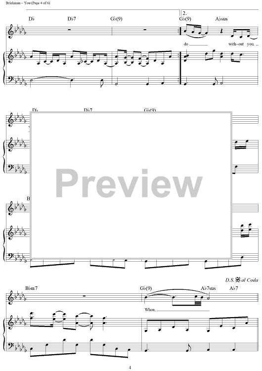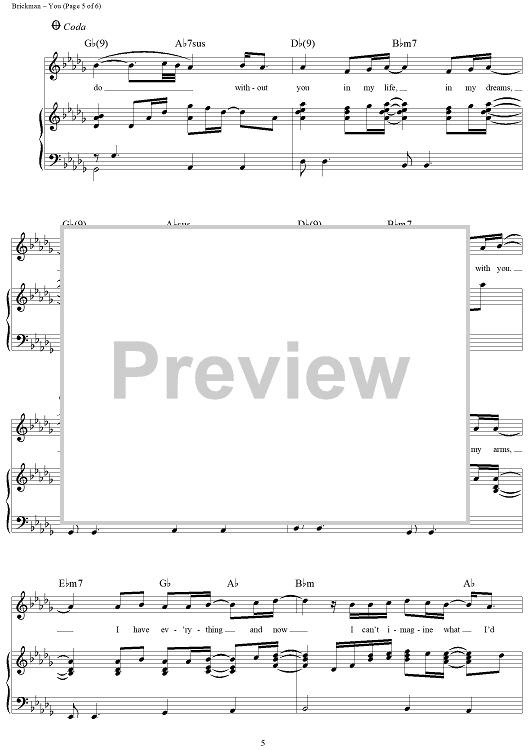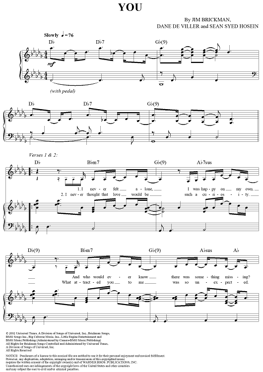 Digital Sheet Music for You by Jim Brickman, Dane Deviller, Sean Syed Hosein scored for Piano/Vocal/Chords; id:292250