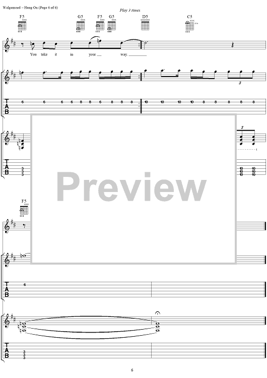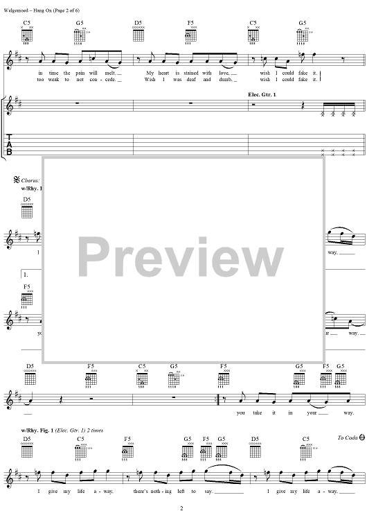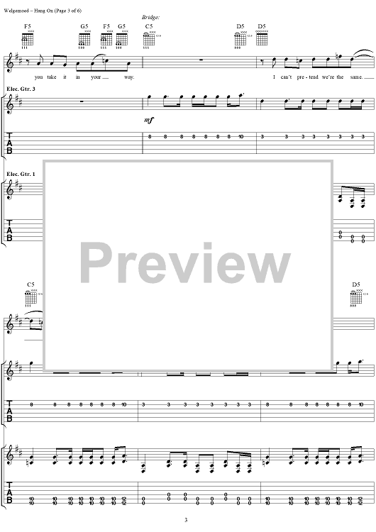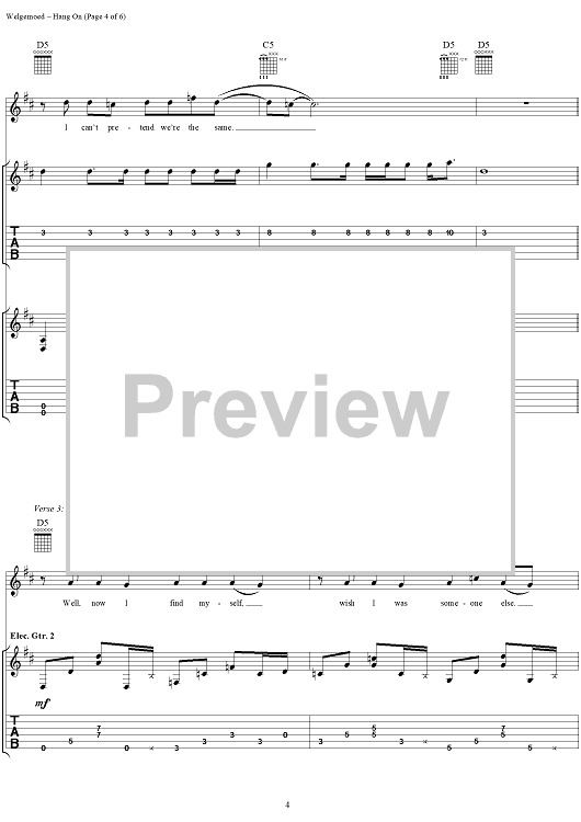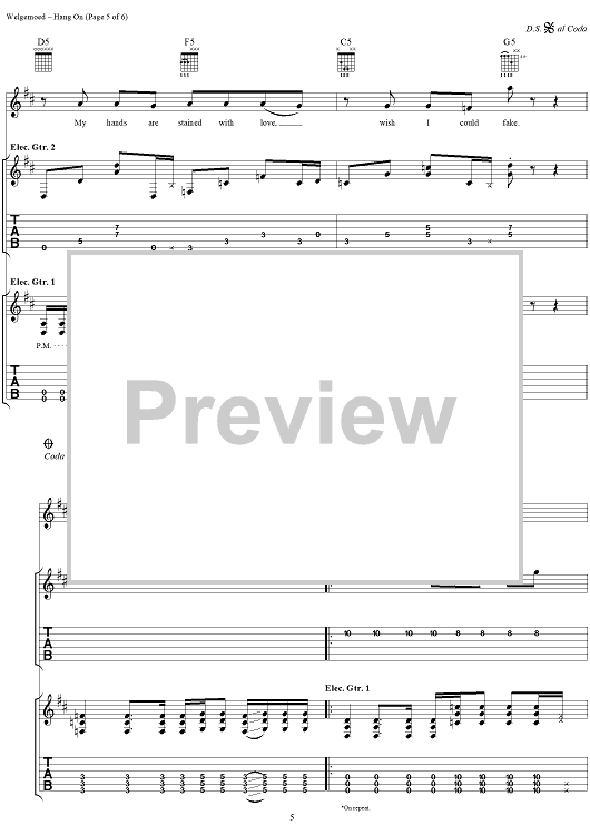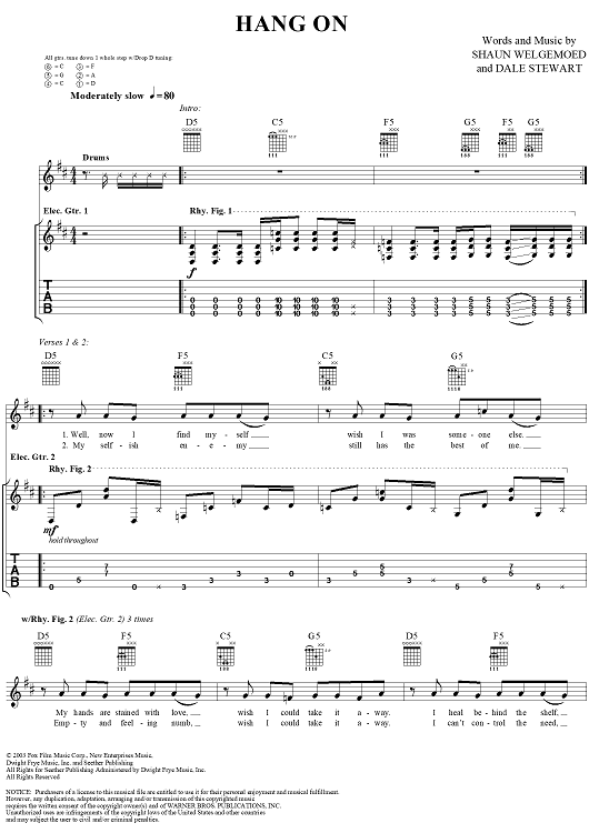 Digital Sheet Music for Hang On by Seether, Shaun Welgemoed, Dale Stewart scored for Guitar Tab/Vocal; id:297327