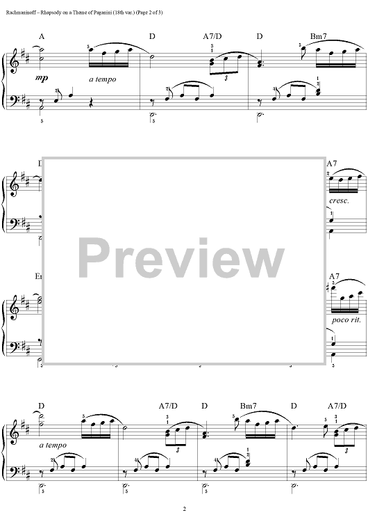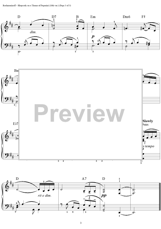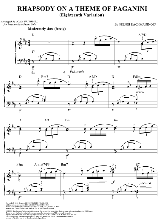 Digital Sheet Music for Rhapsody on a Theme of Paganini's (Eighteenth Variation) by John Brimhall, Sergei Rachmaninoff scored for Piano Solo; id:255309