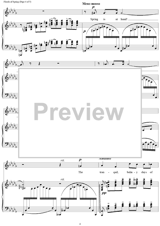 Digital Sheet Music for Twelve Songs, Op. 14, No. 11: Floods of Spring by Tiutchev, Sergei Rachmaninoff scored for Voice/Piano; id:95736