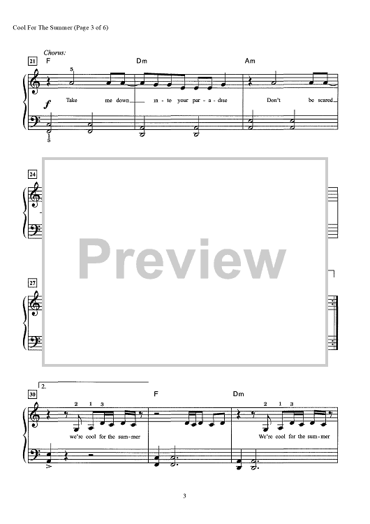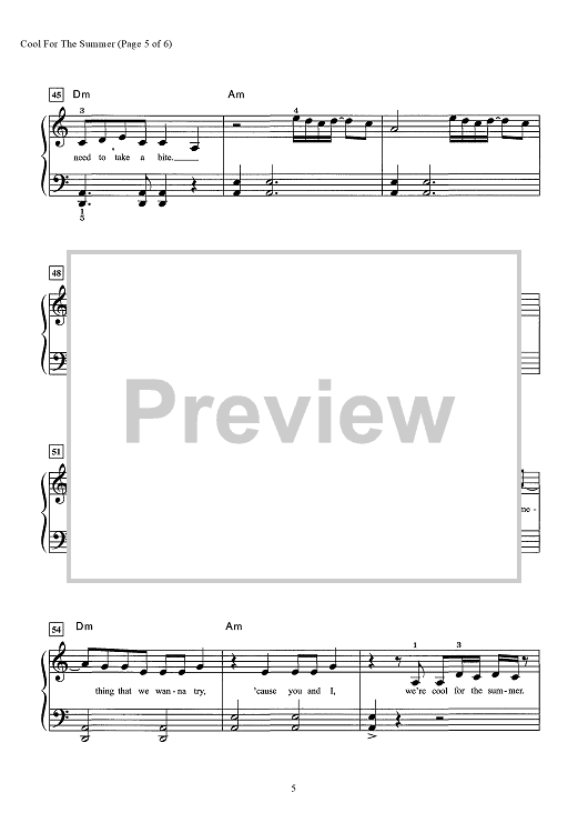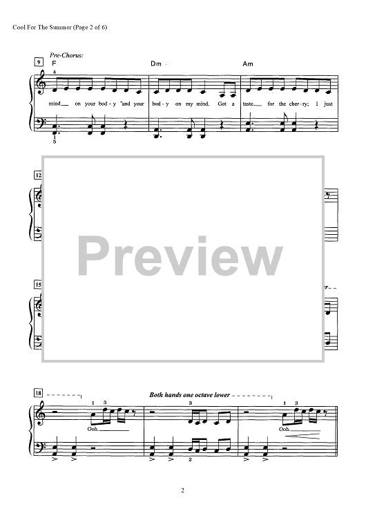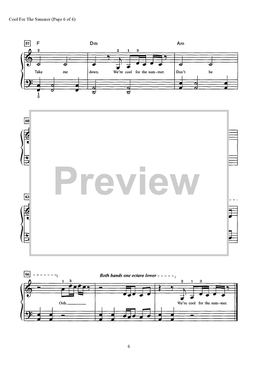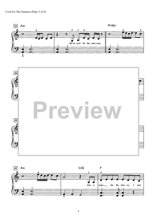 Digital Sheet Music for Cool For The Summer by Max Martin, Alexander Kronlund, Savan Kotecha, Demi Lovato, Demitria Lovato, Ali Payami, Albert Mendoza scored for Big Note Piano; id:466798