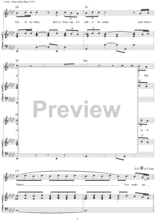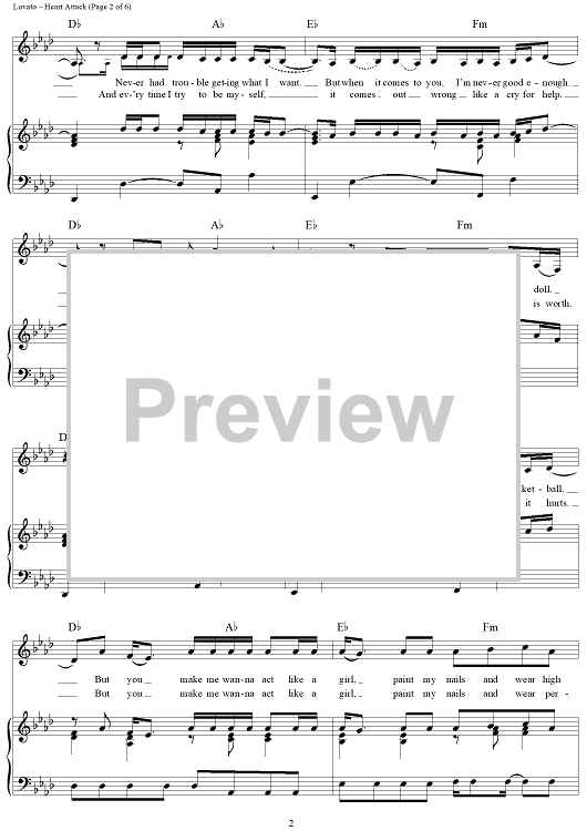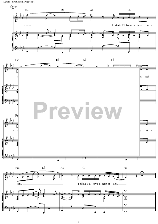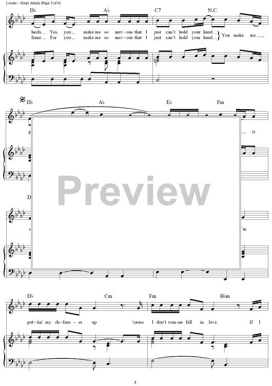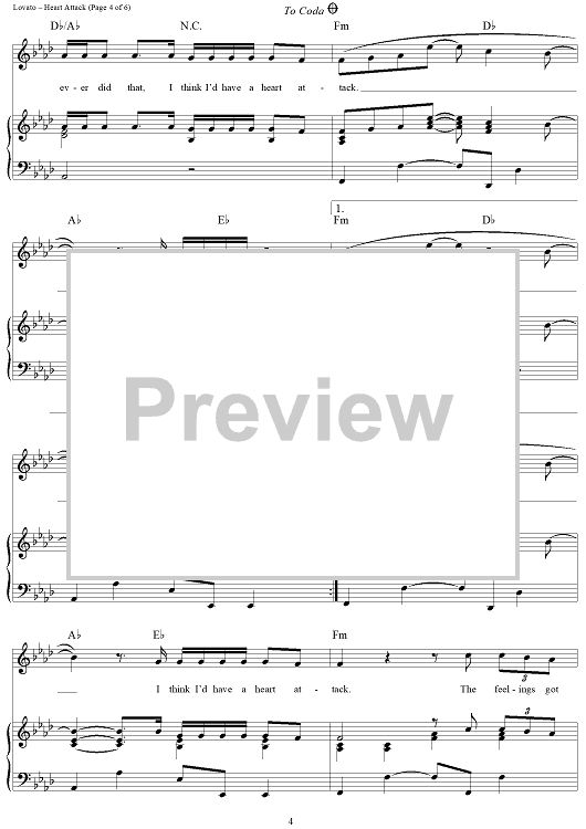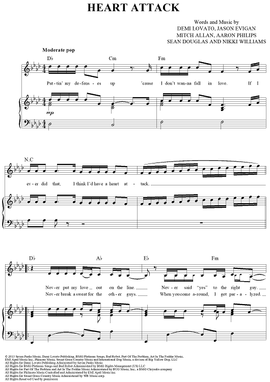Digital Sheet Music for Heart Attack by Mitch Allan, Demi Lovato, Sean Douglas, Jason Evigan, Nikki Williams scored for Piano/Vocal/Chords; id:434648