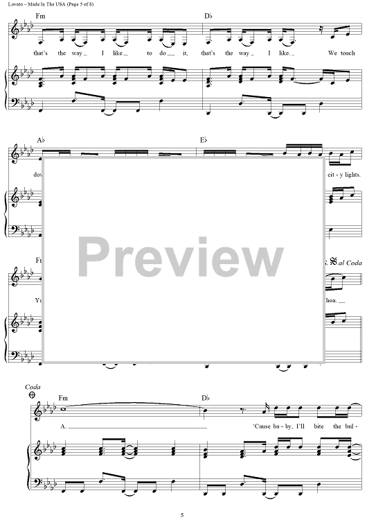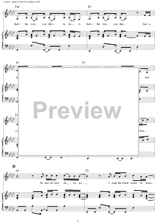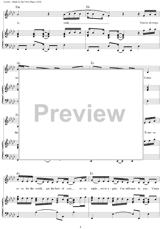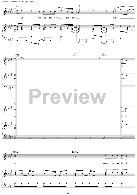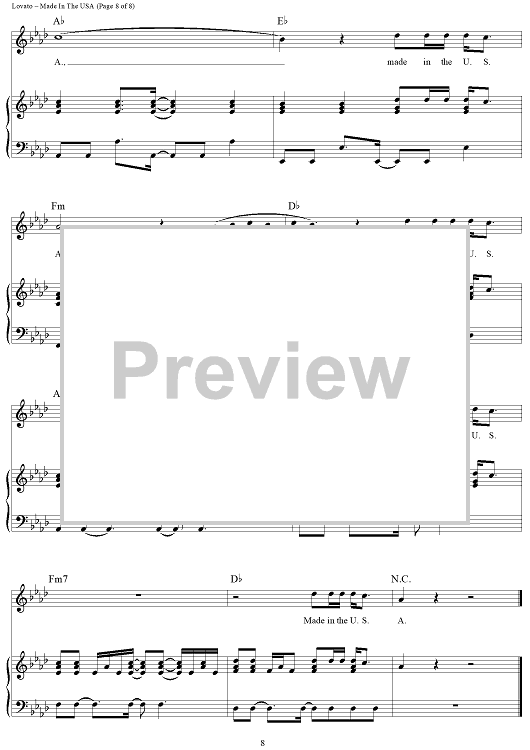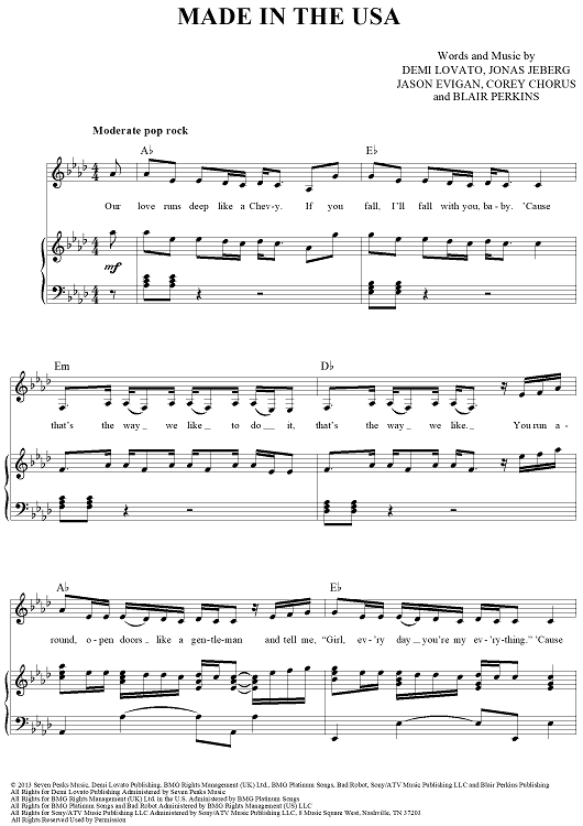 Digital Sheet Music for Made In The USA by Demi Lovato, Jason Evigan, Jonas Jeberg, Corey Chorus, Blair Perkins scored for Piano/Vocal/Chords; id:441781