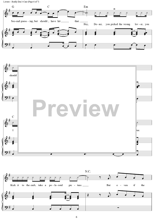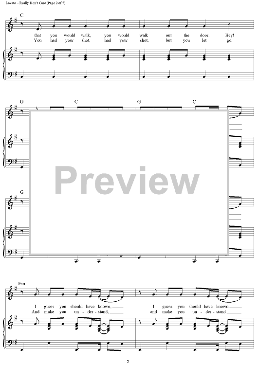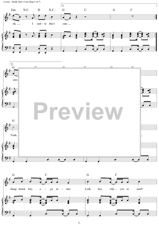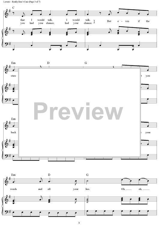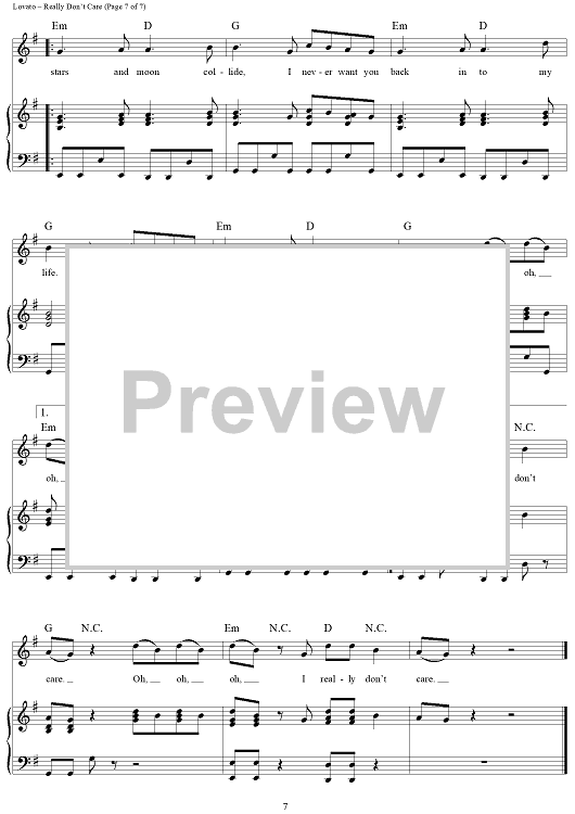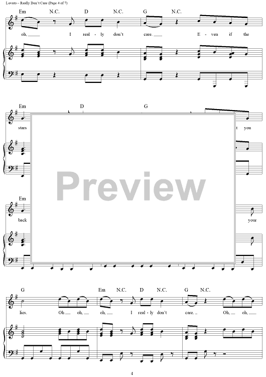 Digital Sheet Music for Really Don't Care by Savan Kotecha, Rami Yacoub, Demi Lovato, Carl Falk, Cher Lloyd scored for Piano/Vocal/Chords; id:442934