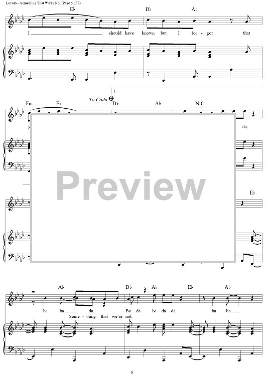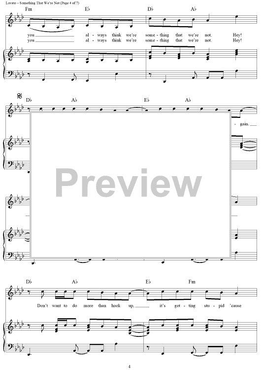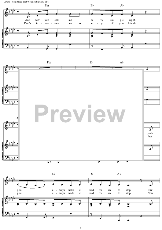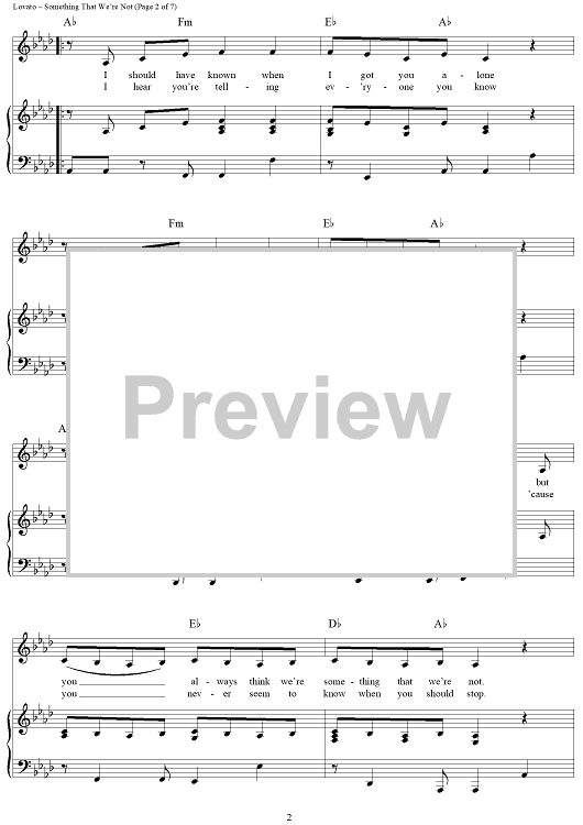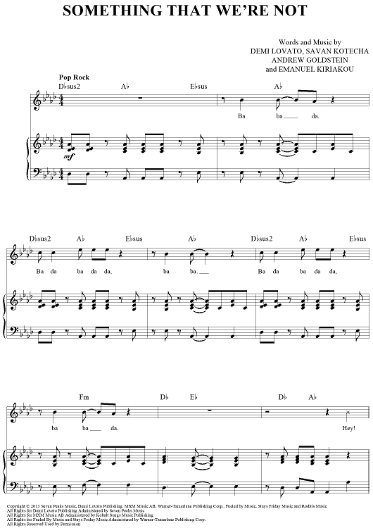 Digital Sheet Music for Something That We're Not by Savan Kotecha, Emanuel Kiriakou, Demi Lovato, Andrew Goldstein scored for Piano/Vocal/Chords; id:444333