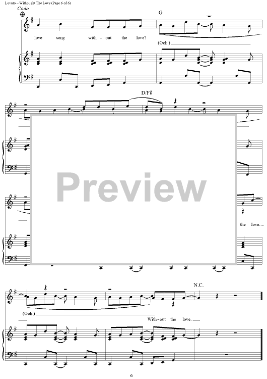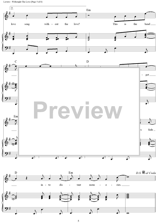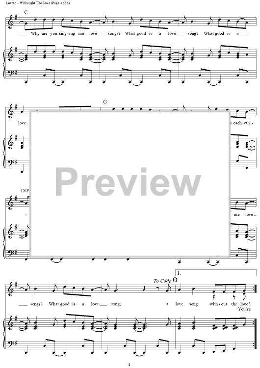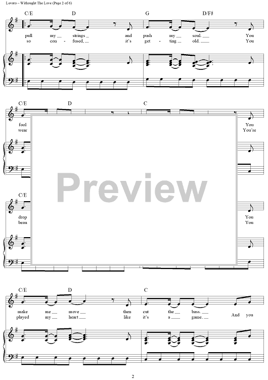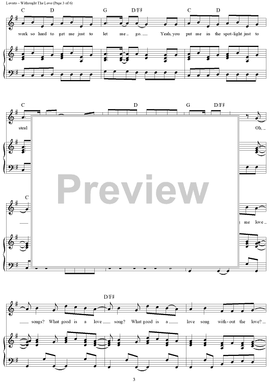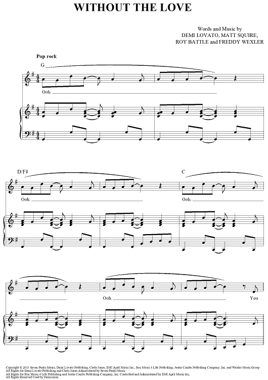 Digital Sheet Music for Without The Love by Demi Lovato, Matt Squire, Roy Battle, Ray Wexler scored for Piano/Vocal/Chords; id:441782
