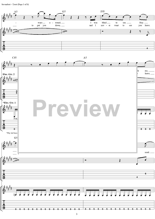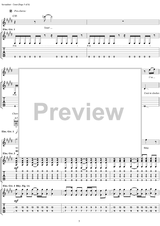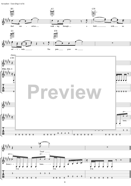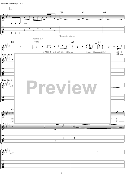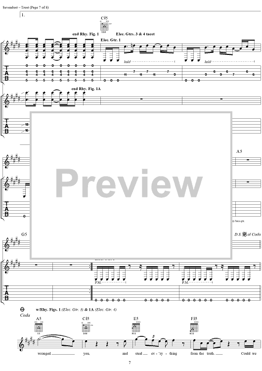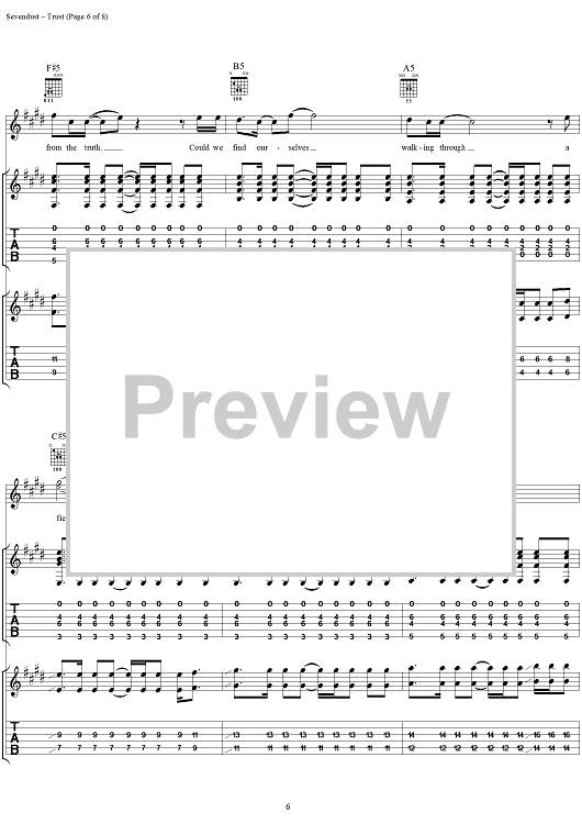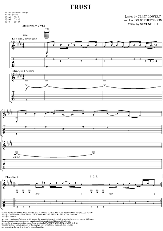 Digital Sheet Music for Trust by Sevendust, Clint Lowery, Lajon Witherspoon scored for Guitar Tab/Vocal; id:289664