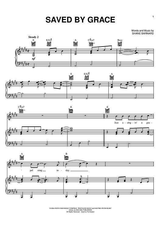 Digital Sheet Music for Saved By Grace by Shane Barnard, Shane and Shane scored for Piano/Vocal/Chords; id:381582