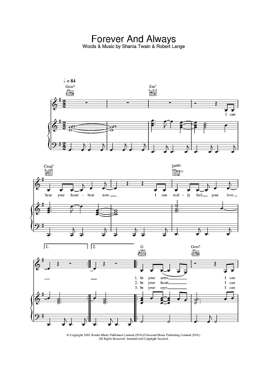 Digital Sheet Music for Forever And Always by Shania Twain scored for Piano/Vocal/Chords; id:378371