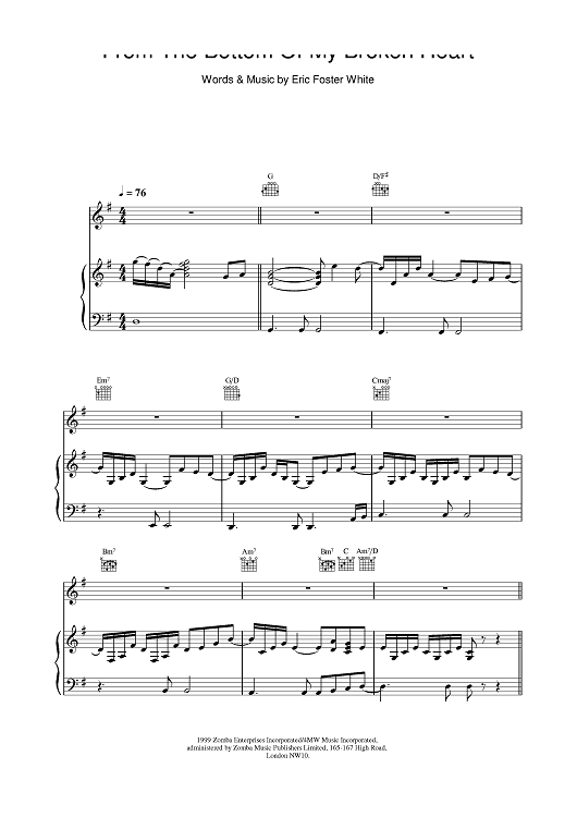 Digital Sheet Music for From The Bottom Of My Broken Heart by Shania Twain scored for Piano/Vocal/Chords; id:376865