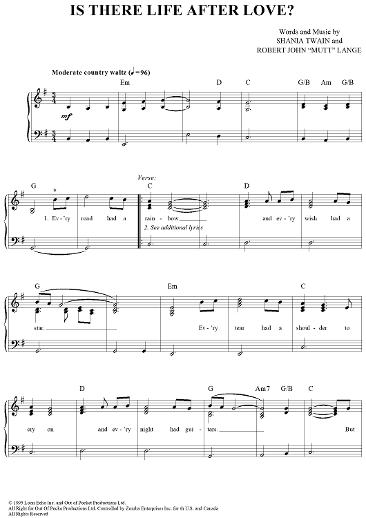 "Is There Life After Love?" Sheet Music by Shania Twain