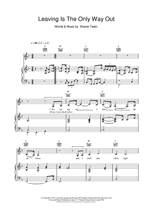 "Leaving Is The Only Way Out" Sheet Music by Shania Twain